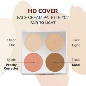 NEW! HD Cover Face Cream Palette adalah palette cream multifungsi dengan coverage tinggi, tekstur creamy, dan hasil natural. Dirancang untuk menyamarkan noda, flek, lingkaran hitam, sekaligus memberi dimensi wajah dalam satu palette praktis.
