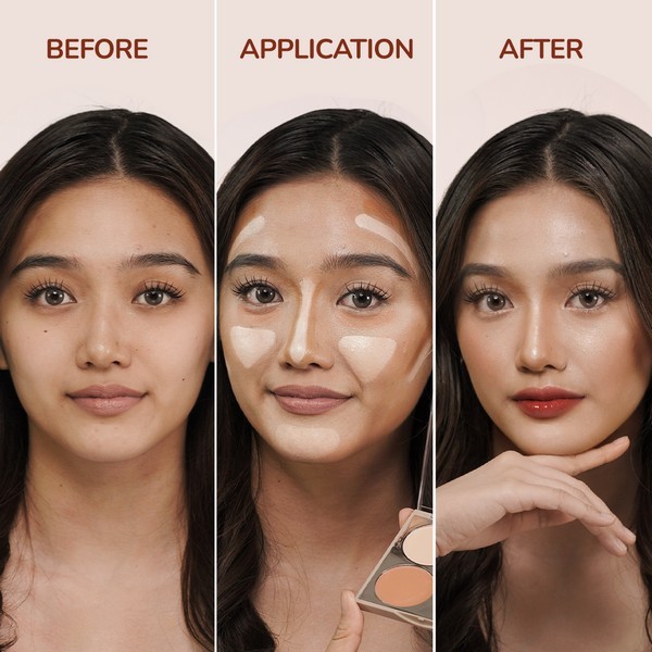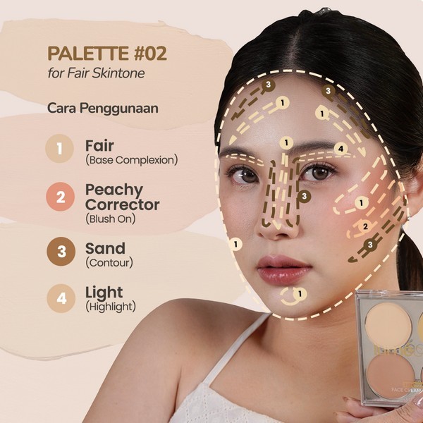 Berisi Corrector, Concealer, Bronzer, dan Contour. Pas untuk kulit light hingga neutral dengan hasil riasan natural, tidak belang, dan menyatu sempurna.